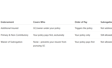 Contract language isn’t fluff—it’s your operating manual when things go sideways. Knowing what these endorsements do, and why they're often required, helps you negotiate smarter, price accurately, and protect your business and reputation.